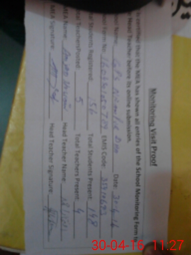 | EMIS Code: 35410693 | Name of School: GPS NIZAM PUR DHAKA | |||