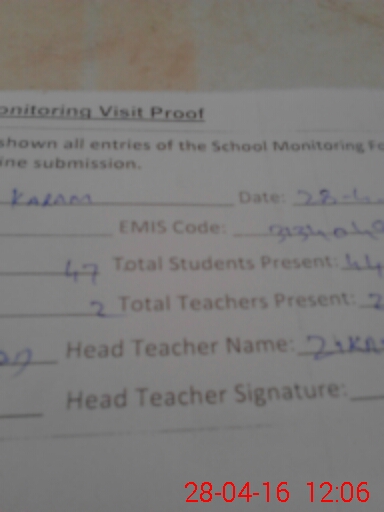 | Attendance Register | Head Teacher | MEA with School | Visit Proof |