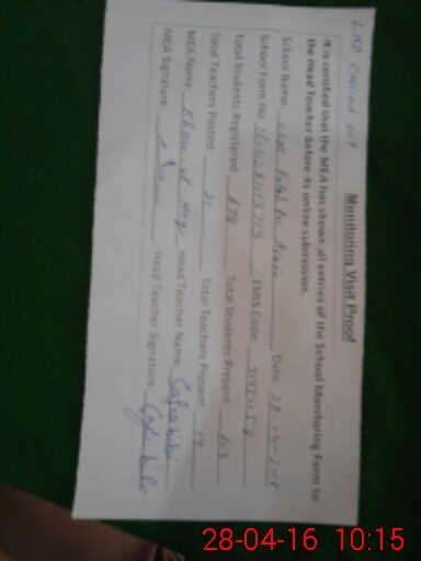 | Monitoring Date: 28-04-2016 | Start Time: 28-04-2016 08:34 AM | End Time: 28-04-2016 10:25 AM | Name of MEA: Mu**** Is**** | |