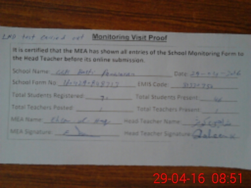 | Certified that this School was Inspected by the Undersigned MEA/DMO Today and the Information Stated Above is as Per Record. | |||||
