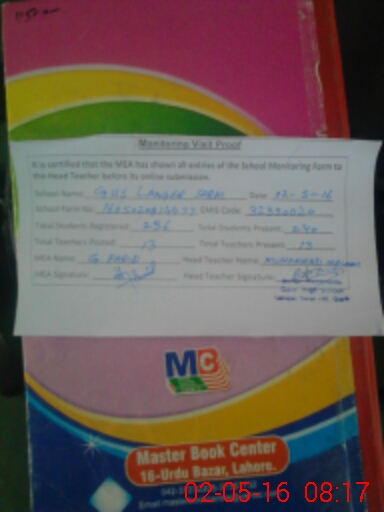 | EMIS Code: 32330020 | Name of School: GHS LANGER SARAI | |||