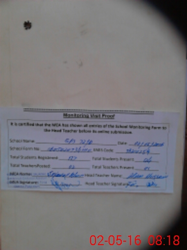 | Attendance Register | Head Teacher | MEA with School | Visit Proof |