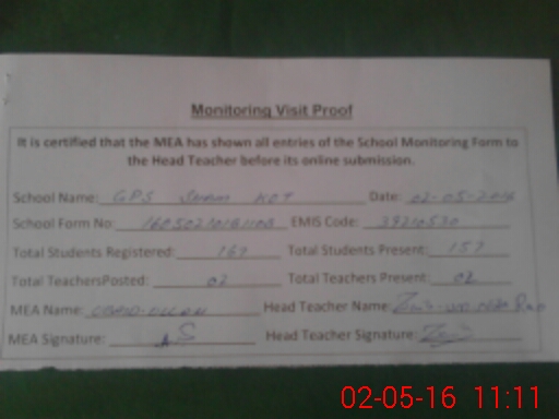 | Certified that this School was Inspected by the Undersigned MEA/DMO Today and the Information Stated Above is as Per Record. | |||||
