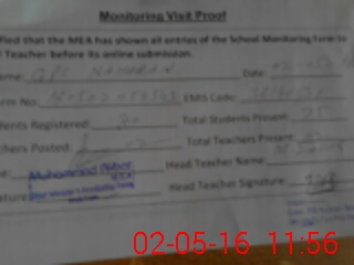 | Attendance Register | Head Teacher | MEA with School | Visit Proof |