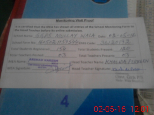 | EMIS Code: 36120192 | Name of School: GGPS MULLAY WALA MAUZA WAINS SHUJABAD | |||
