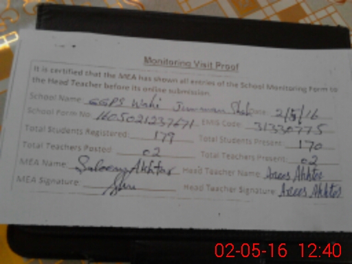| Certified that this School was Inspected by the Undersigned MEA/DMO Today and the Information Stated Above is as Per Record. | |||||