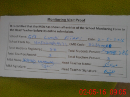 | EMIS Code: 32340080 | Name of School: GPS LUNDI PITAFI | |||