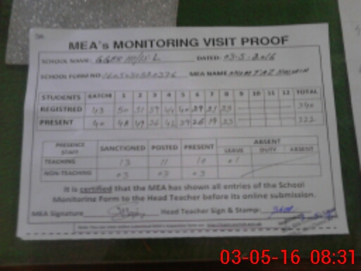 | Certified that this School was Inspected by the Undersigned MEA/DMO Today and the Information Stated Above is as Per Record. | |||||