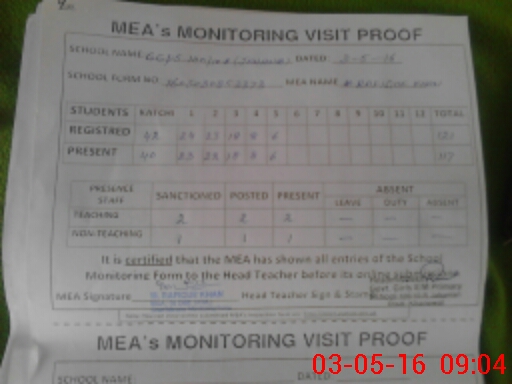 | Attendance Register | Head Teacher | MEA with School | Visit Proof |