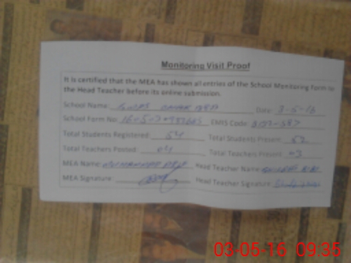 | Attendance Register | Head Teacher | MEA with School | Visit Proof |