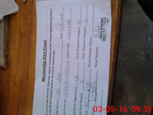 | Attendance Register | Head Teacher | MEA with School | Visit Proof |