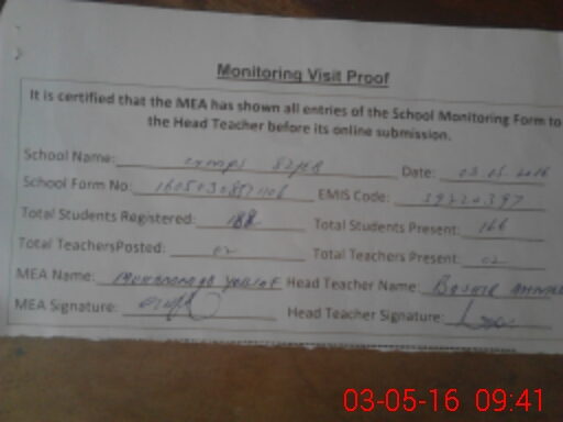 | Certified that this School was Inspected by the Undersigned MEA/DMO Today and the Information Stated Above is as Per Record. | |||||
