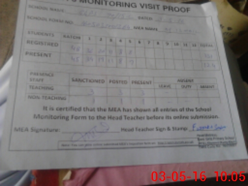 | Attendance Register | Head Teacher | MEA with School | Visit Proof |