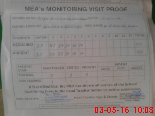 | Attendance Register | Head Teacher | MEA with School | Visit Proof |