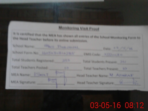 | Certified that this School was Inspected by the Undersigned MEA/DMO Today and the Information Stated Above is as Per Record. | |||||