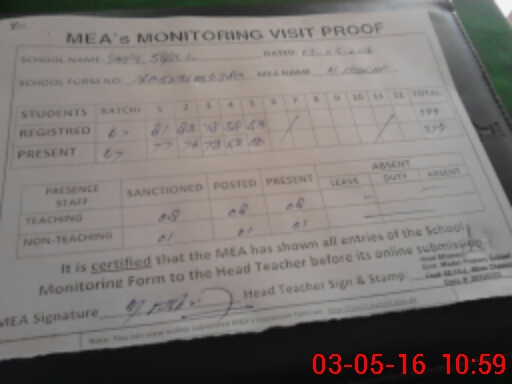 | Attendance Register | Head Teacher | MEA with School | Visit Proof |