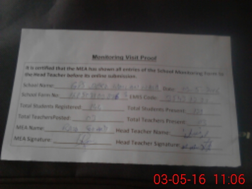| Certified that this School was Inspected by the Undersigned MEA/DMO Today and the Information Stated Above is as Per Record. | |||||