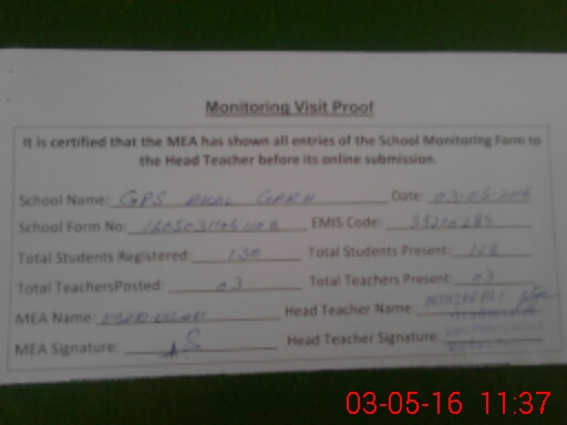 | Attendance Register | Head Teacher | MEA with School | Visit Proof |