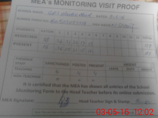 | EMIS Code: 36430228 | Name of School: GPS HAIDER ABAD, TULAMBA | |||