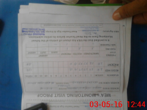 | Monitoring Date: 03-05-2016 | Start Time: 03-05-2016 12:16 PM | End Time: 03-05-2016 12:54 PM | Name of MEA: M.Ra**** Kh**** (R**** | |