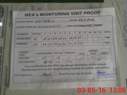 | Certified that this School was Inspected by the Undersigned MEA/DMO Today and the Information Stated Above is as Per Record. | |||||