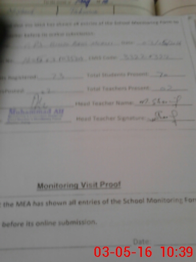 | Certified that this School was Inspected by the Undersigned MEA/DMO Today and the Information Stated Above is as Per Record. | |||||