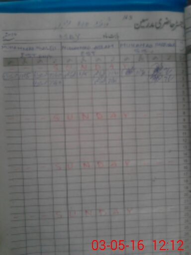 | CNIC | Full Name | Designation | R/C | Absence During Last Calender Month |