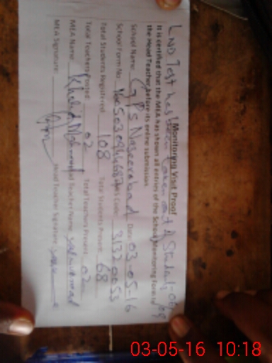 | School Visited by School Health & Nutrition Supervisor (No. of Visits) | 1 | Name1: | SABIR HUSSAIN | Name2: | NIL |