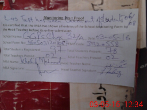 | EMIS Code: 31320558 | Name of School: GGPS CHAK 32/A | |||