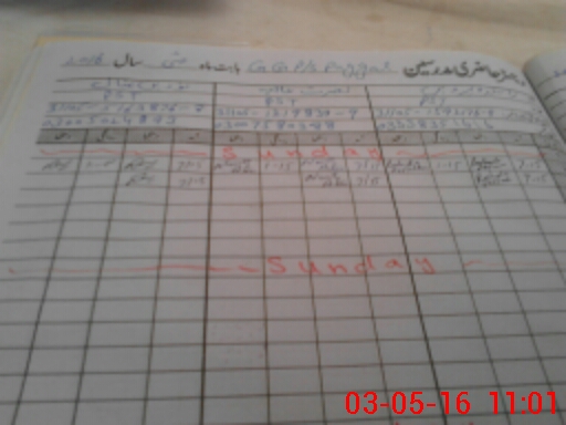 | CNIC | Full Name | Designation | R/C | Absence During Last Calender Month |