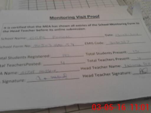| Attendance Register | Head Teacher | MEA with School | Visit Proof |