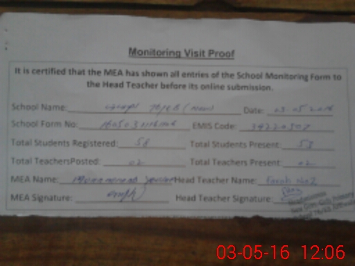 | Certified that this School was Inspected by the Undersigned MEA/DMO Today and the Information Stated Above is as Per Record. | |||||