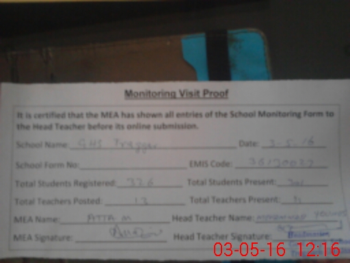 | EMIS Code: 36130027 | Name of School: GHS TRAGGAR MULTAN | |||