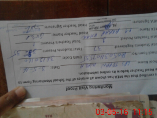 | Name: MU**** Ha**** Designation: (School Headmaster's/Headmistress's) HEADMASTER Phone/Cell Number: 03**** |