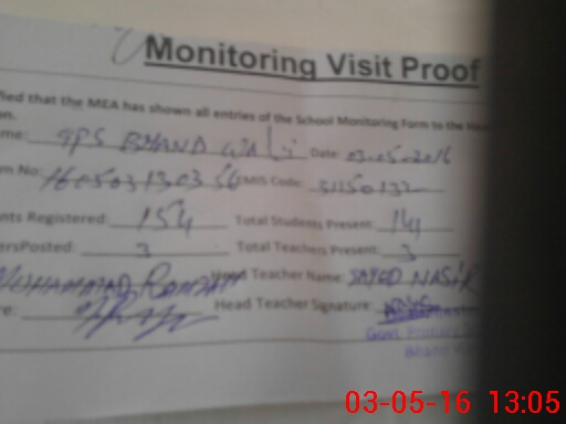 | EMIS Code: 31150132 | Name of School: GPS BHAND WALI | |||