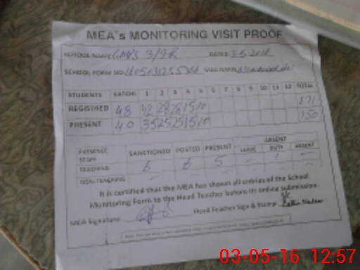 | Attendance Register | Head Teacher | MEA with School | Visit Proof |