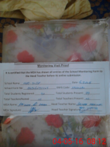 | Attendance Register | Head Teacher | MEA with School | Visit Proof |