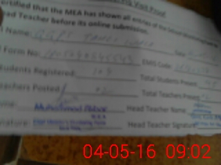 | Attendance Register | Head Teacher | MEA with School | Visit Proof |