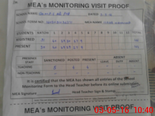 | Certified that this School was Inspected by the Undersigned MEA/DMO Today and the Information Stated Above is as Per Record. | |||||