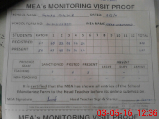 | Certified that this School was Inspected by the Undersigned MEA/DMO Today and the Information Stated Above is as Per Record. | |||||