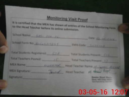 | Certified that this School was Inspected by the Undersigned MEA/DMO Today and the Information Stated Above is as Per Record. | |||||
