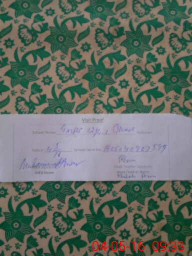 | School Visited by School Health & Nutrition Supervisor (No. of Visits) | 2 | Name1: | Mian Ghulam Qadir | Name2: | |