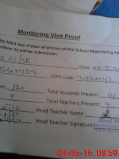 | Attendance Register | Head Teacher | MEA with School | Visit Proof |