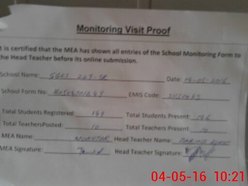 | Attendance Register | Head Teacher | MEA with School | Visit Proof |