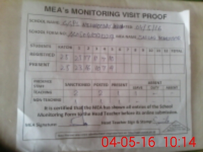 | Attendance Register | Head Teacher | MEA with School | Visit Proof |