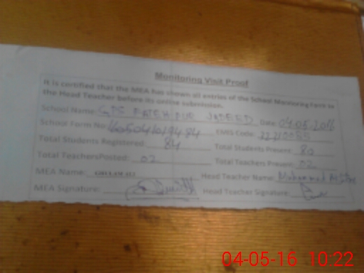 | EMIS Code: 32310085 | Name of School: GPS FATEH PUR JADEED | |||
