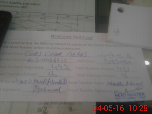 | EMIS Code: 31330080 | Name of School: GES CHAK ABBAS | |||