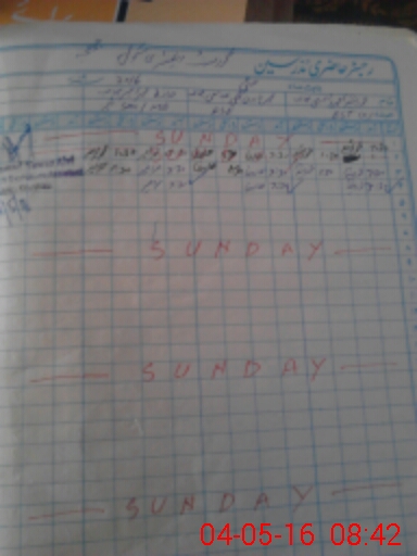 | CNIC | Full Name | Designation | R/C | Absence During Last Calender Month |