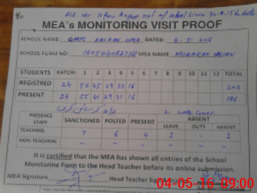 | EMIS Code: 36410464 | Name of School: GMPS KALKAN WALA, ABDUL HAKIM | |||
