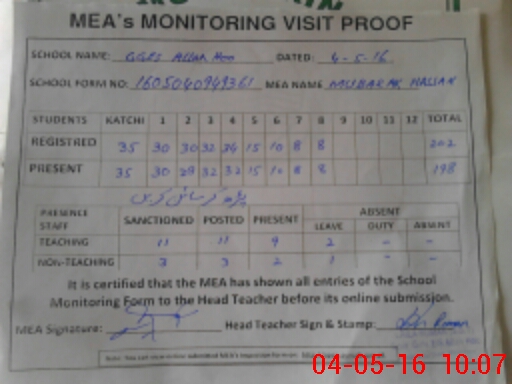 | EMIS Code: 36410463 | Name of School: GMES ALLAH HOO, ABDUL HAKIM | |||